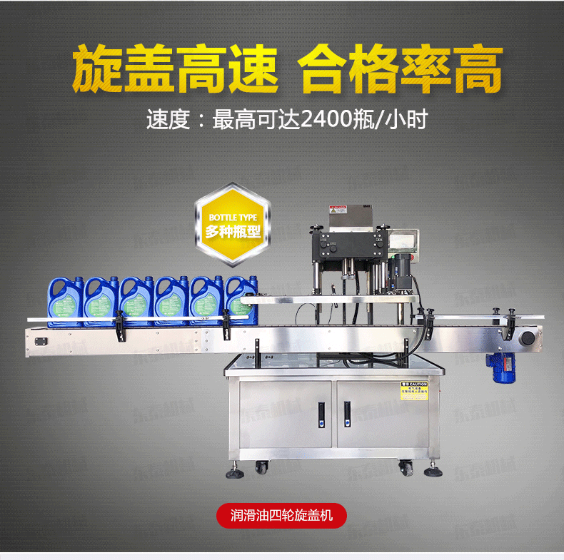 全自動(dòng)旋蓋機(jī)是參照國機(jī)型改進(jìn)設(shè)計(jì)、旋蓋速度快,合格率高、操作方便?蛇m用于食品、制藥、日化、農(nóng)藥、化妝品等行業(yè)的不同瓶形的旋蓋。四臺(tái)調(diào)速電機(jī)分別用于供蓋、夾瓶、傳送、旋蓋,機(jī)器自動(dòng)化程度高,穩(wěn)定性好,調(diào)節(jié)方便,更換瓶形或蓋時(shí)無須備件,只需作調(diào)整即可完成(如配上蓋機(jī),可進(jìn)行自動(dòng)上蓋)可以根據(jù)實(shí)際需要選配。